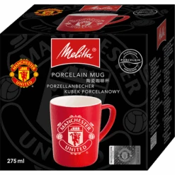 Ein Muss für Fans unseres Kaffee-Partners Manchester United! Mit diesem Becher aus hochwertigem Porzellan wird jeder Schluck zu einem ganz besonderen Fan-Genussmoment. Mit einem Fassungsvermögen von 290ml ist dieser Becher für jeden Manchester United Fan der beste Begleiter im Alltag.